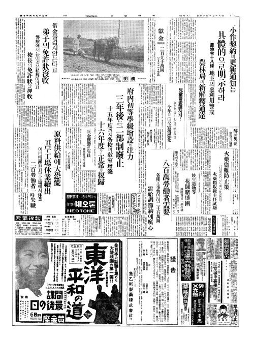 - 府內初等學級增設(부내초등학급증설)에注力(주력) 三年後(삼연후)는二部制廢止(이부제폐지)