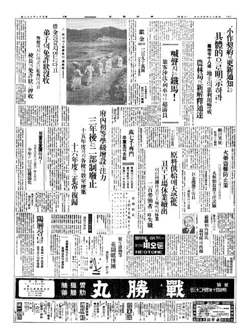 - 陽曆(양역)장날 全朝鮮一千四百處(전조선일천사백처) 百(백)퍼센트의好成績(호성적)