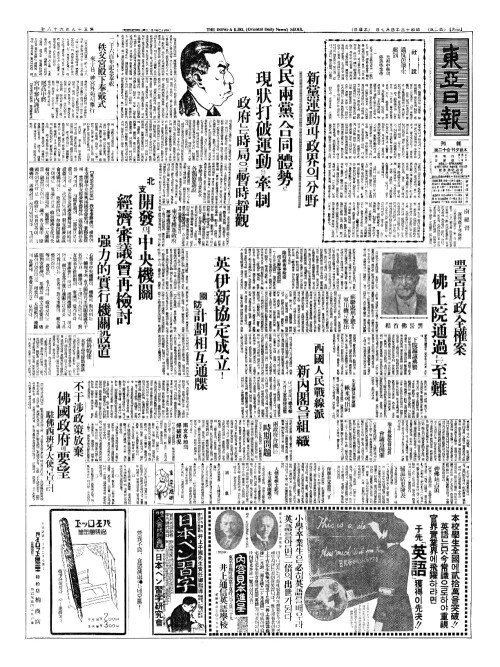 - 英人撤退凖備(영인철퇴준비)로 英國巡洋兩艦隊地中海(영국순양양함대지중해)에出動(출동) 프랑코軍(군)의進擊開始(진격개시)로