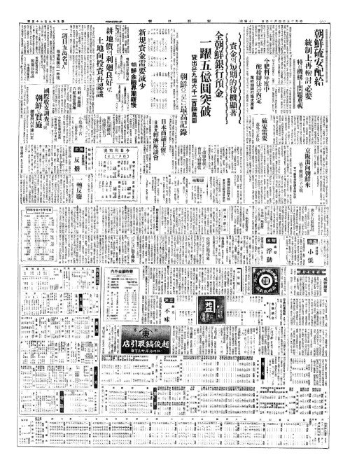 - 資金(자김)의短期的待機顯著(단기적대기현저) 全朝鮮銀行預金(전조선은행예김) 一躍五億圓突破(일약오억원돌파)