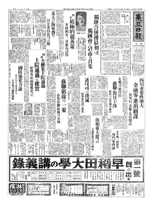 - 獨墺合併後最初(독오합병후최초)의 獨國會(독국회)를윈市(시)에召集(소집)