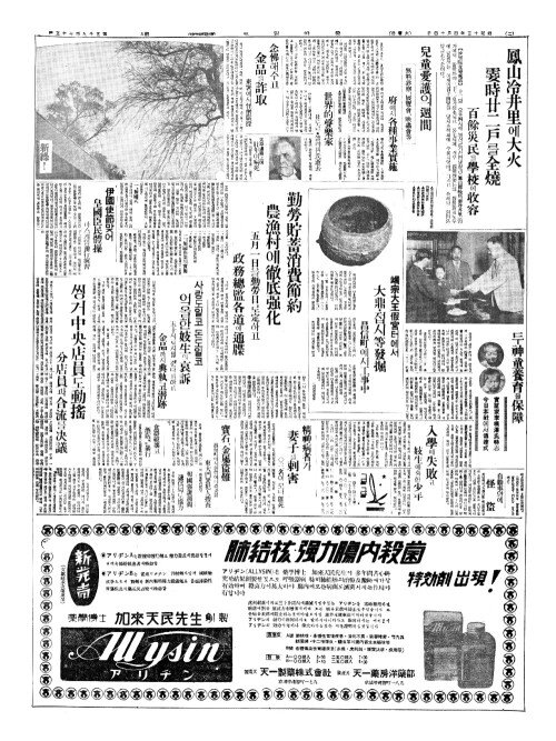 - 鳳山冷井里(봉산랭정리)에大火(대화) 霎時廿二戶(삽시입이호)를全燒(전소)
