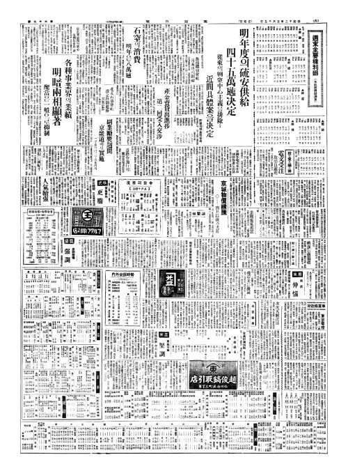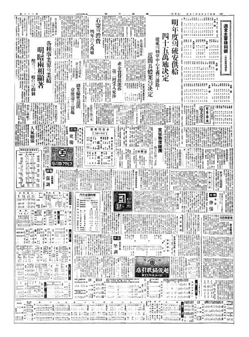 - 明年度(명년탁)의硫安供給(유안공급) 四十五萬瓲决定(사십오만톤결정)