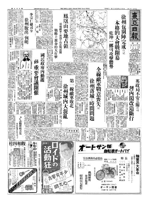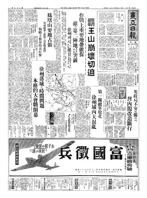- 徐州陷落問題(서주함낙문제)를 『輕視(경시)』로僞裝(위장) 蔣介石依然豪語(장개석의연호어)