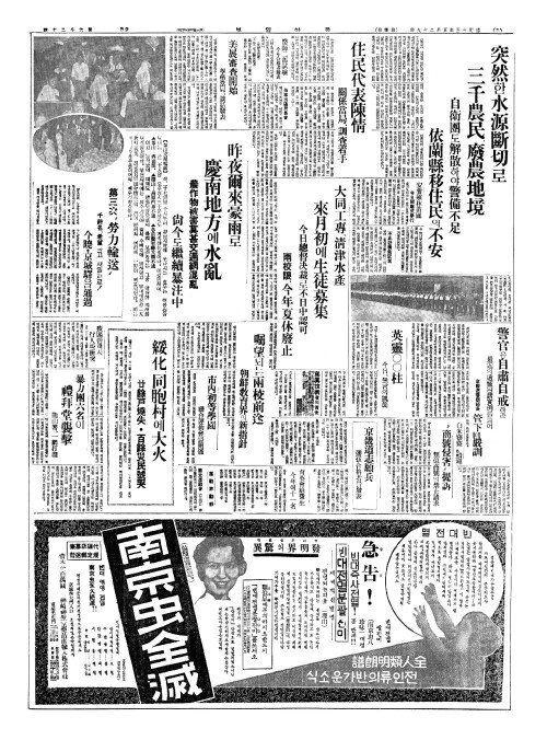 - 突然(돌연)한 水源斷切(수원단절)로 三千農民(삼천농민)、廢農地境(폐농지경)