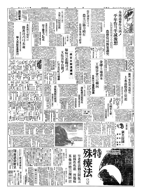 - 全南道麥作大凶(전남도맥작대흉)!平年作(평년작)의半减豫想(반감예상)