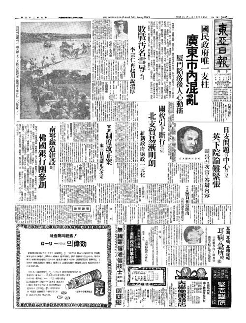 - 關稅引下斷行(관세인하단행)으로 北支貿易漸明朗(북지무역점명랑) 維新政府財政一元化(유신정부재정일원화)