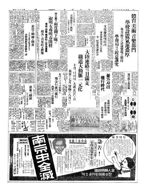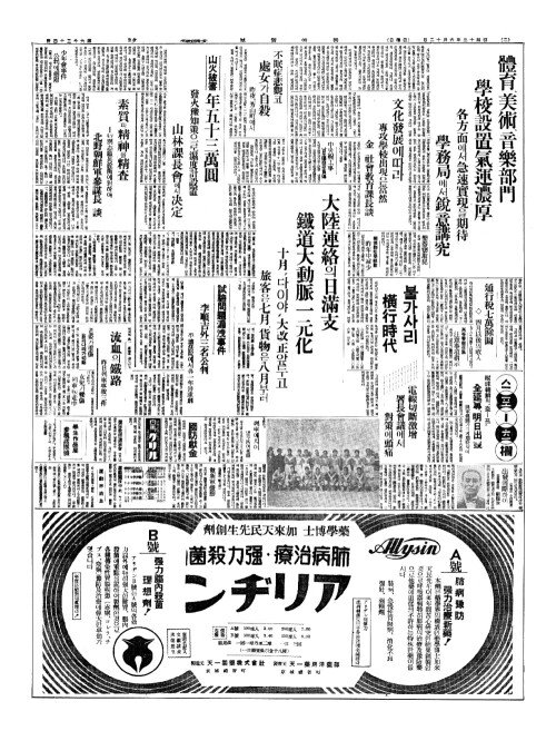 - 大陸連絡(대륙연락)의日滿支(일만지) 鐵道大動脈一元化(철도대동맥일원화) 十月(십월)"다이야"大改正(대개정)앞두고 旅客(여객)은七月(칠월)、貨物(화물)은八月(팔월)부터