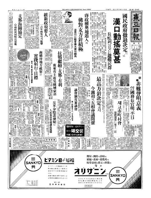 - 國民政府撤退决定(국민정부철퇴결정)으로 漢口動搖莫甚(한구동요막심)