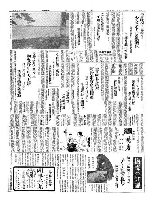 - 물에빠진盲兒救(맹아구)하려다 少女老人(소녀로인)도遂溺死(수닉사) 조개잡이갓다가참극연출 平壤普通江(평양보통강)에慘事(참사)