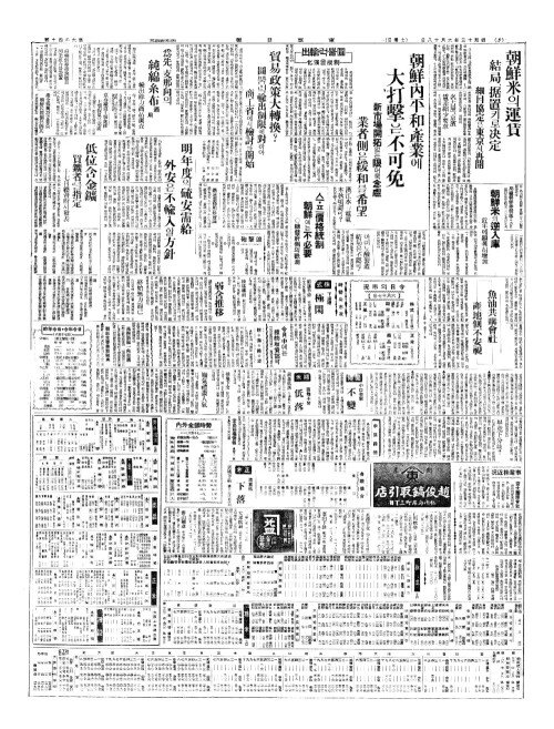- 朝鮮米(조선미)의運賃(운임) 結局(결국)、据置(거치)키로决定(결정) 細目協定(세목협정)은東京(동경)서再開(재개)