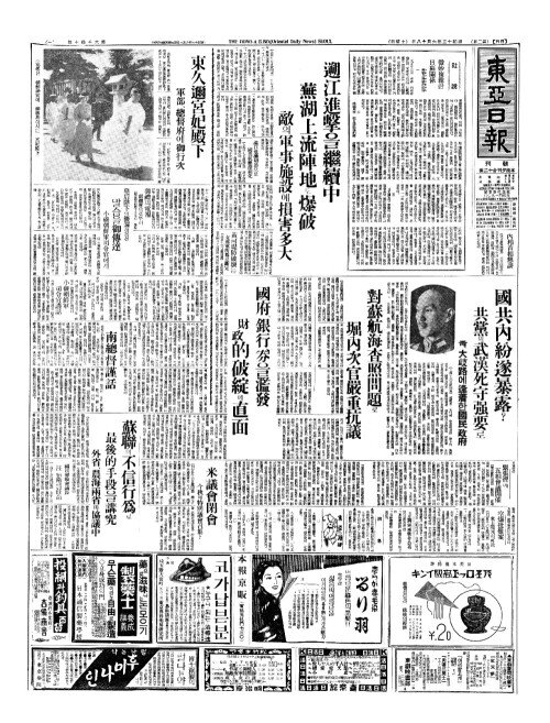 - 國共內紛遂暴露(국공내분수폭노)?共黨(공당)의武漢死守强要(무한사수강요)로 重大歧路(중대기노)에逢着(봉저)한國民政府(국민정부)