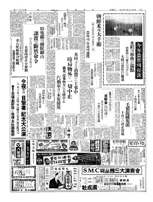 - 今年農作(금년농작)의打診(타진) 水稻(수도)의移秧(이앙)은滿點(만점) 稻熱病(도열병)은더擴大(확대)되지안는다 大體(대체)로豊作(례작)은無違(무위)