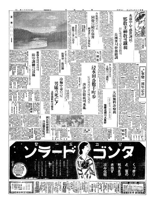 - 浸水田畓數千町步(침수전답삭천정보) 도로파괴로교동에도지장 唐津合德面(당진합덕면)에水亂(수난)
