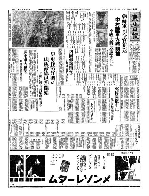 - 內閣參議補充(내각삼의보충)에 小磯(소기)、阿部兩氏最有力(아부량씨최유력)
