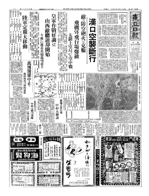 - 漢口空襲斷行(한구공습단행) 敵(적)의防空砲火(방공포화)를克服(극복)