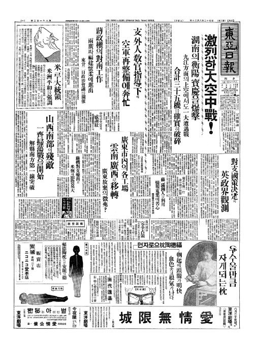 - 激烈(격렬)한大空中戰(대공중전)!湖南(호남)의衡陽(형양)、寳慶(보경)을爆擊(폭격) 九江方面(구강방면)의上空(상공)에서도一大遭遇戰(일대조우전) 合計三十五機(합계삼십오기)를確實(확실)히破碎(파쇄)