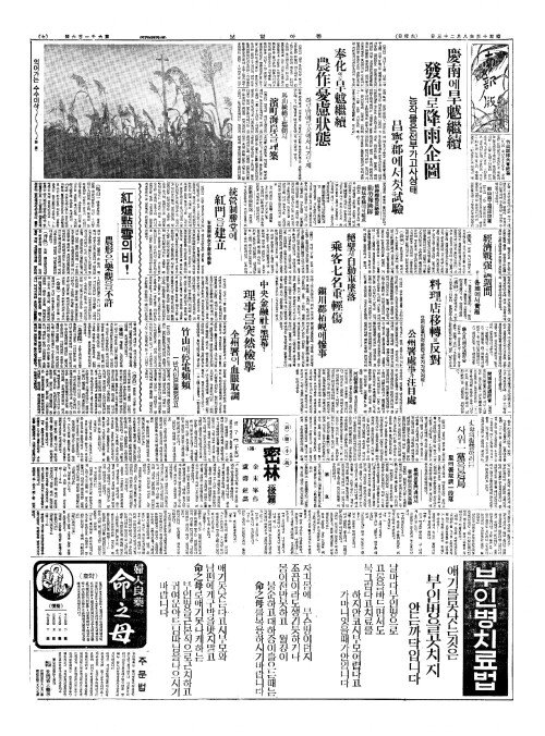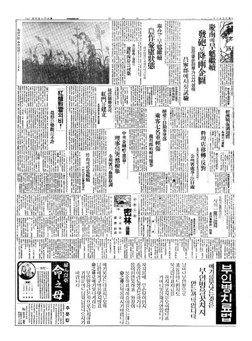 - 奉化(봉화)에도旱魃繼續(한발계속) 農作憂慮狀態(농작우려장태)