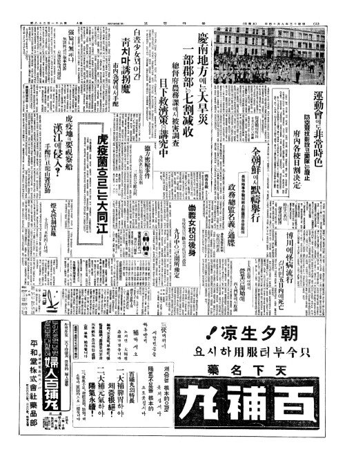 - 洛東江沿岸(락동강연안)에 大旱災(대한재) 七割减收(칠할감수)는未免狀態(미면장태)