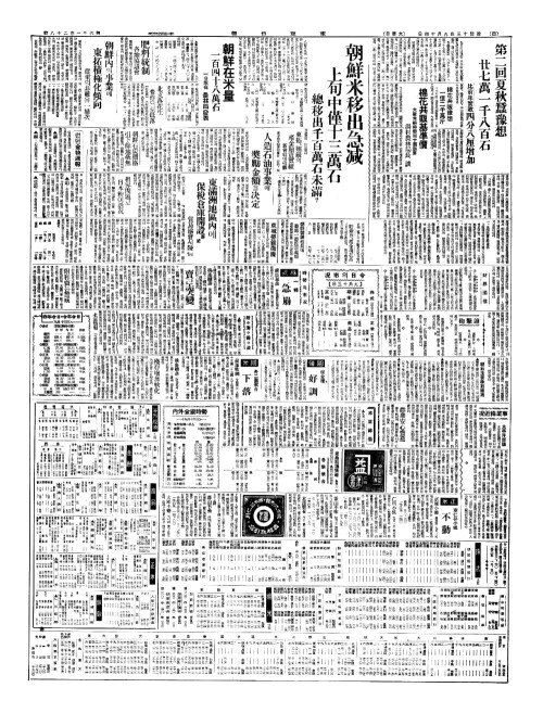 - 朝鮮米移出急减(조선미이출급감) 上旬中僅十三萬石(상순중근십삼만석)