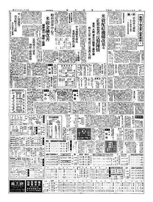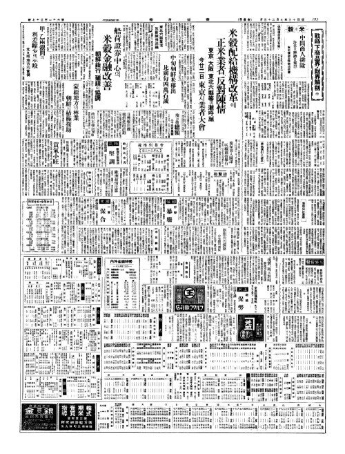 - 米糓配給機構改革(미곡배급기구개혁)에 正米業者(정미업자)、反對陳情(반대진정) 東京(동경)、大阪(대판)、東北六縣等(동북륙현등)이漸呼應(점호응) 昨廿二日東京(작입이일동경)서業者大會(업자대회)