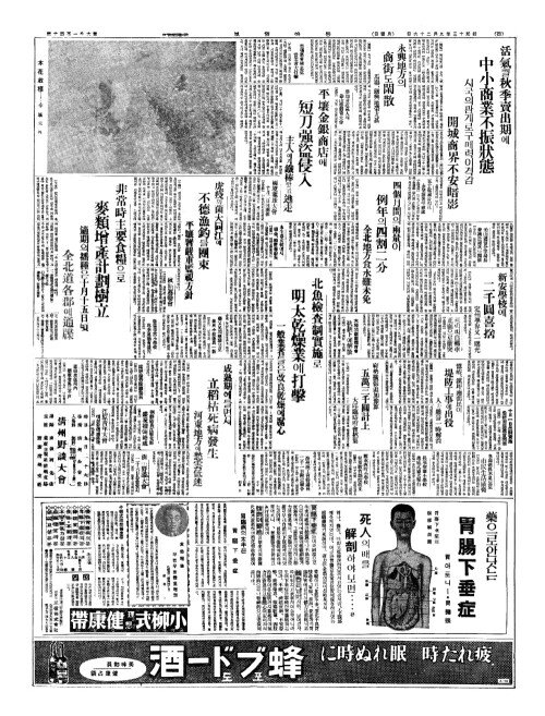 - 活氣(활기)띌秋季賣出期(추계매출기)에 中小商業不振狀態(중소상업부진상태)