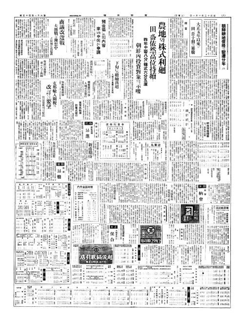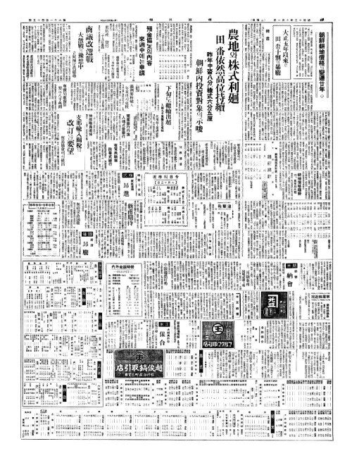 - 朝鮮耕地價格(조선경지가격)의 變遷廿年(변천입년)㊀ 大正五年以來(대정오년이내)로 田(전)、畓十割(답십할)의暴騰(폭등)