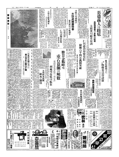 - 仁川港沿岸貿易十二年度(인천항연안무이십이년도) 總額六千四百萬圓突破(총액륙천사백만원돌파)