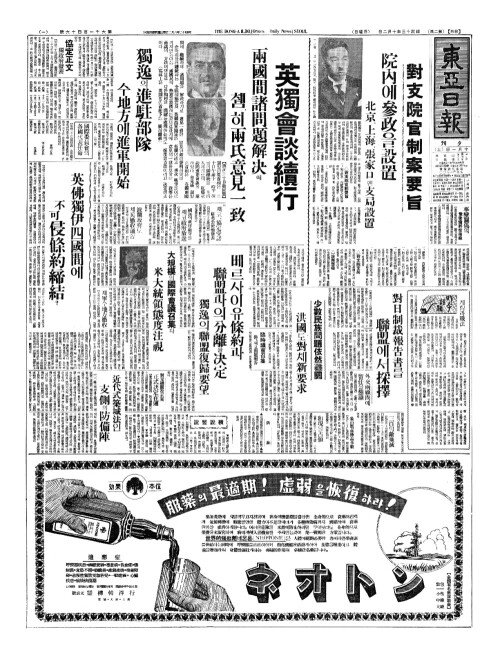 - 英佛獨伊四個國間(영불독이사개국간) 不侵略締結(부침략체결)을交涉(교섭)?又復會合(우복회합)하야諸問題討議說(제문제토의설)