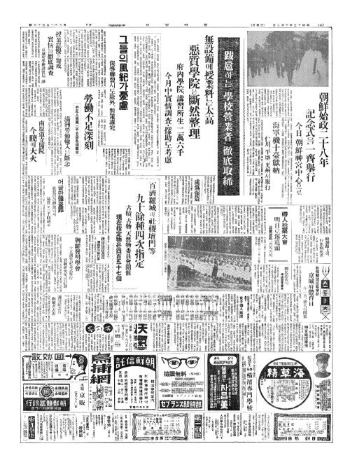 - 朝鮮始政二十八年(조선시정이십팔년) 記念式(기념식)을一齊擧行(일제거행)