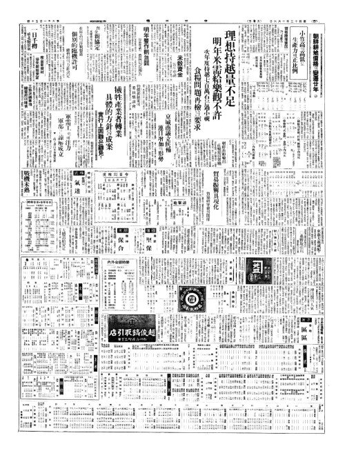 - 理想持越量不足(리상지월량부족) 明年米需給樂觀不許(명년미수급요관부허)