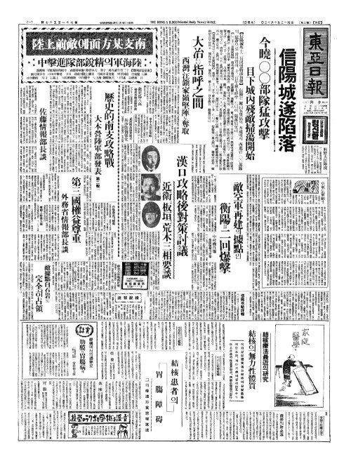 - 要衝信陽陷落(요충신양함낙)으로 武漢防衛(무한방위)에大打擊(대타격)