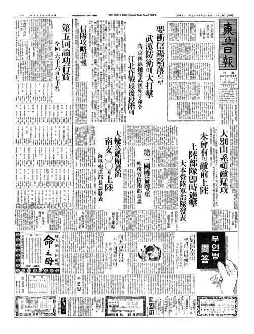 - 信陽城遂陷落(신양성수함락) 今曉(금효)、○○部隊猛攻擊(부대맹공격) 目下城內殘敵掃蕩開始(목하성내잔적소탕개시)