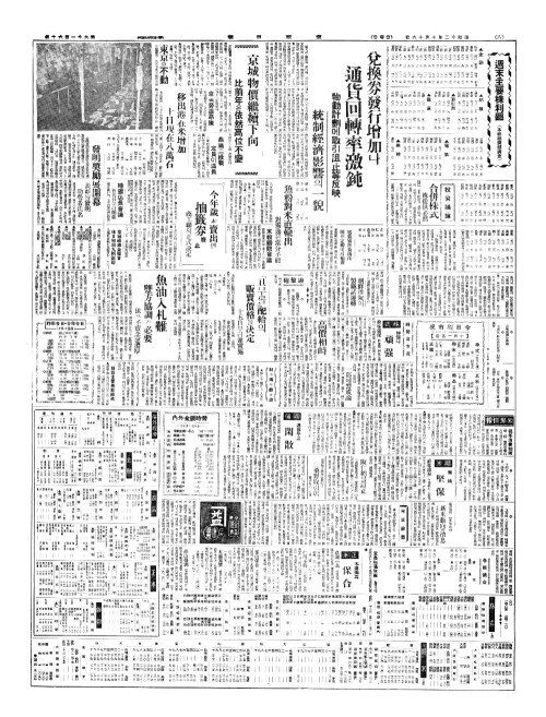 - 兌換券發行增加(태환권발행증가)나 通貨回轉率激鈍(통화회전율격둔) 物動計劃(물동계획)에取引沮止等反映(취인저지등반영) 統制經濟影響(통제경제영향)의一貌(일모)
