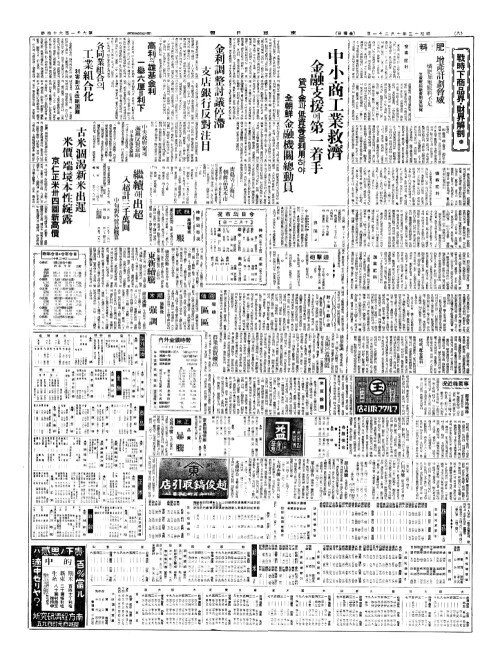 - 中小商工業救濟(중소상공업구제) 金融支援(금융지원)에第一着手(제일저수) 貸下金(대하김)과低資等(저자등)을利用(이용)하야 全朝鮮金融機關總動員(전조선김융기관총동원)