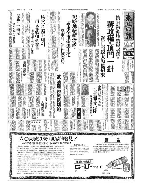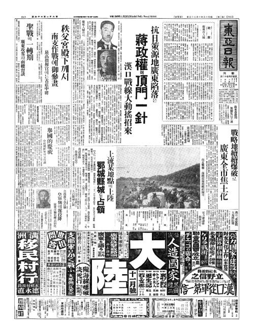 - 抗日策源地廣東陷落(항일책원지광동함낙)은 蔣政權(장정권)에頂門一針(정문일침)