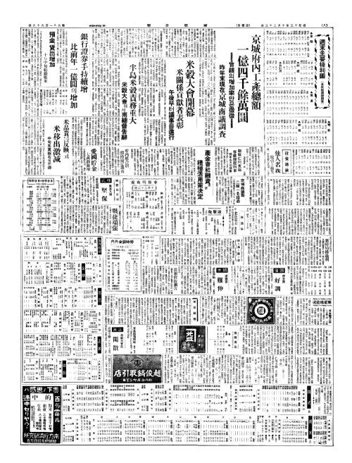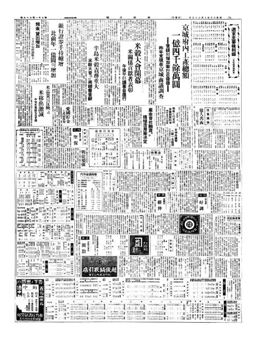 - 京城府內工產總額(경성부내공산총액) 一億四千餘萬圓(일억사천여만원)