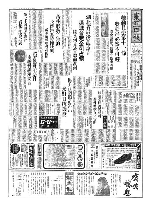 - 揚子江閉鎻(양자강폐쇄)에對(대)하야 米對日抗議說(미대일항의설)