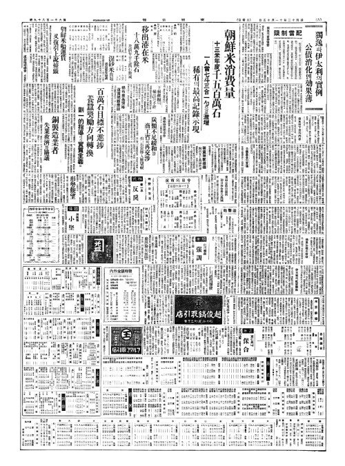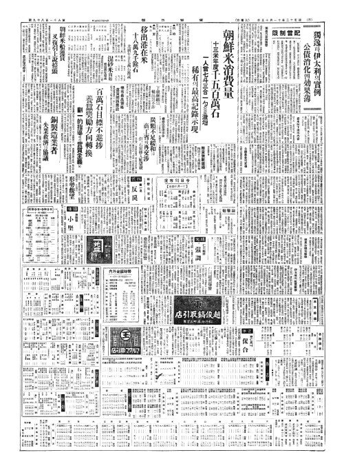 - 朝鮮米消費量(조선미소비량) 十三米年度千五百萬石(십삼미연도천오백만석)