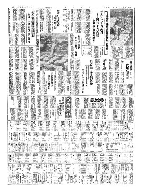 - 果實(과실)의生產及輸移出狀况(생산급수이출상황)〔昨年度(작년도)〕年產(년산)=三千百萬貫(삼천백만관)