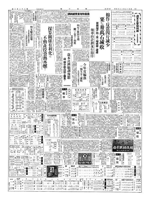 - 棉作(면작)은反當四斤减少(반당사근감소) 粟(속)도卅萬石减收(삽만석감수) 農產物增產實績鈍調(농산물증산실적둔조)