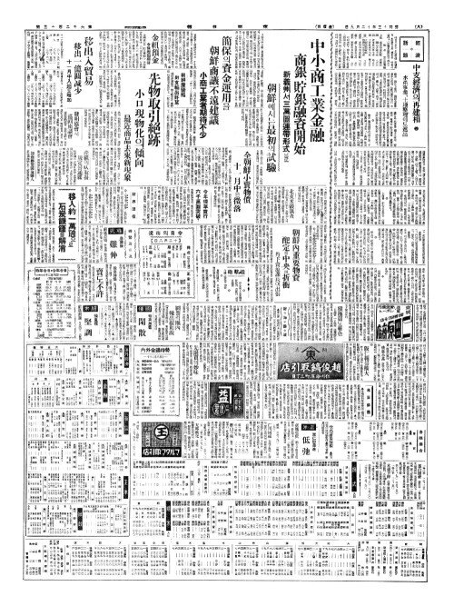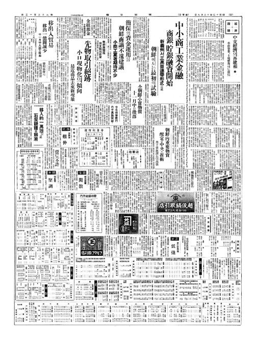 - 中小商工業金融(중소상공업김융) 商銀(상은)、貯銀融資開始(저은융자개시) 新義州(신의주)서三萬圓連帶形式(삼만원연대형식)으로