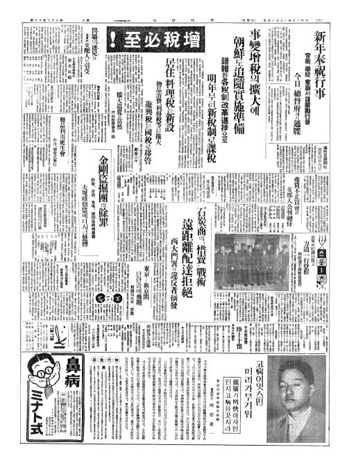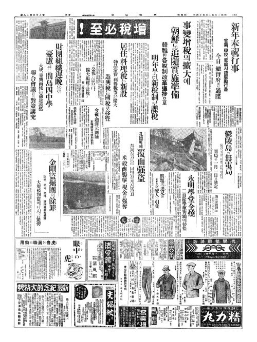 - 明年度新規增稅(명년도신규증세) 具體的方針遂决定(구체적방침수결정)
