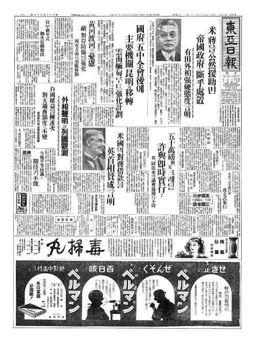 - 米(미)、蔣(장)을公然援助(공연원조)면 帝國政府(제국정부)도斷乎處置(단호처치) 有田外相强硬態度言明(유전외상강경태탁언명)