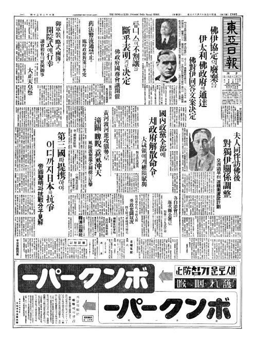 - 佛伊協定(불이협정)의廢棄(폐기)를 伊太利(이태리)、佛政府(불정부)에通達(통달)