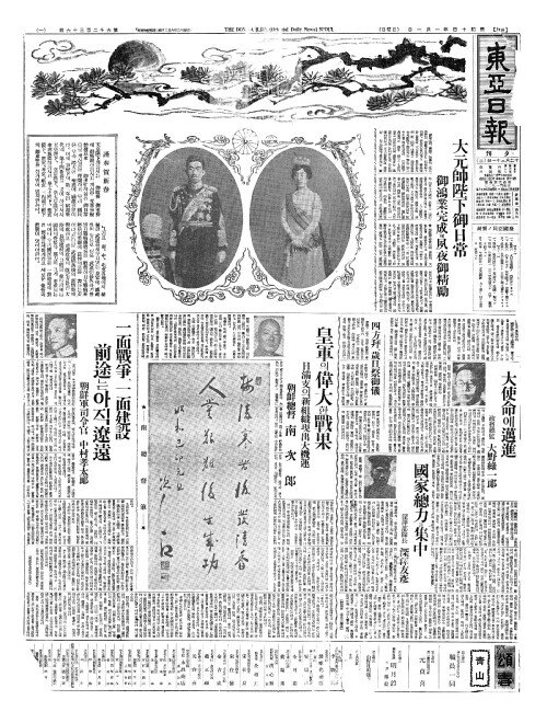 - 聯盟(련맹)의機構(기구)에依(의)하야 朝鮮(조선)의責務遂行(책무수행) 國民精神總動員(국민정신총동원) 朝鮮聯盟總裁(조선련맹총재) 川島義之(천도의지)