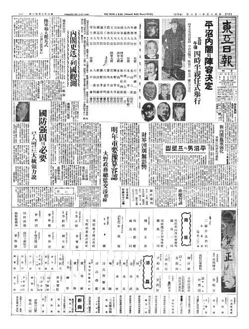 - 平沼內閣(평소내각)의陣容决定(진용결정)