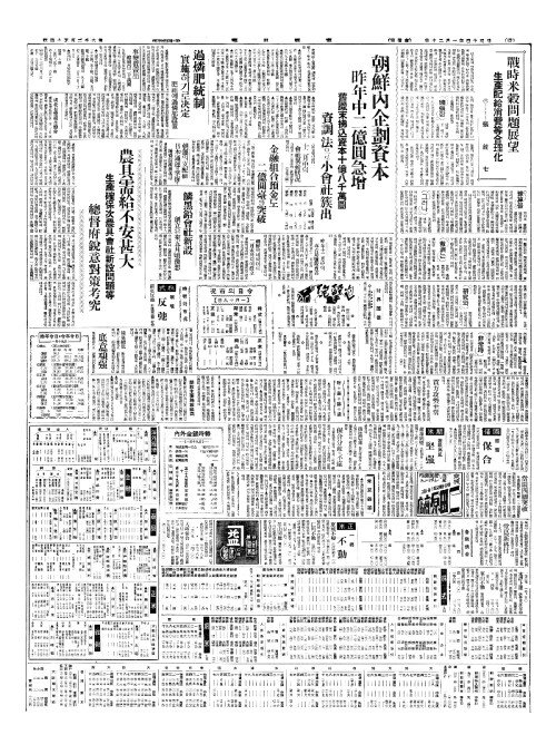 - 朝鮮內企劃資本(조선내기획자본) 昨年中二億圓急增(작년중이억원급증)