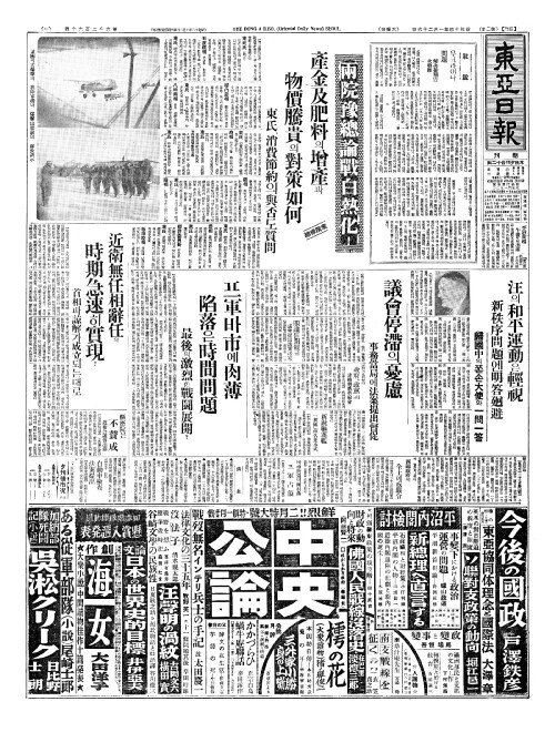 - 汪(왕)의和平運動(화평운동)은輕視(경시) 新秩序問題(신질서문제)엔明答廻避(명답회피)
