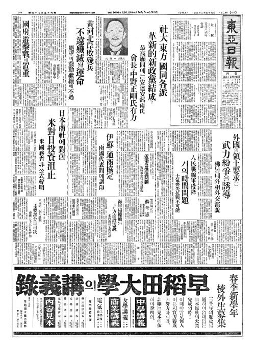 - 社大(사대)、東方(동방)、國同各派(국동각파) 革新的新政黨結成(혁신적신정당결성)?